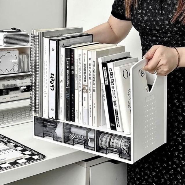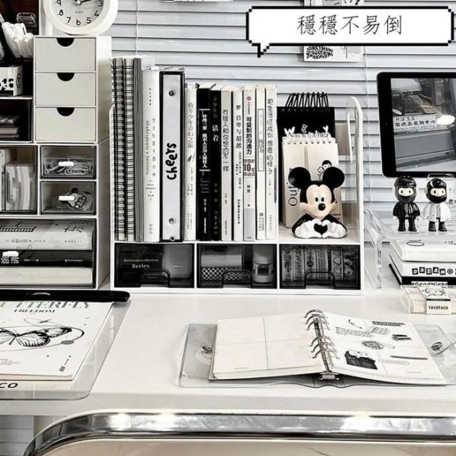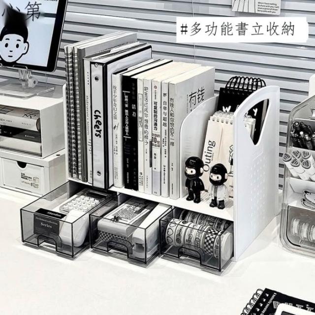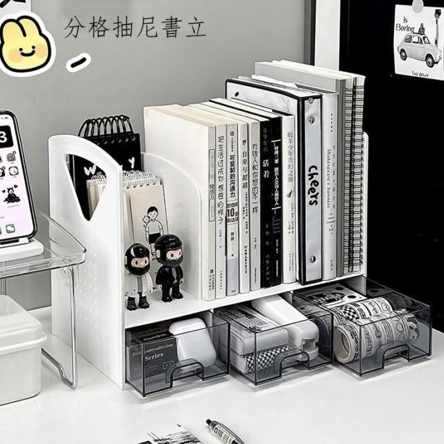 貨到付款 桌面收纳盒抽屉式书立架办公室文件书本置物架亚克力书立书架书夹桌面整理盒 書桌收納 桌面抽屜式收納盒 文具