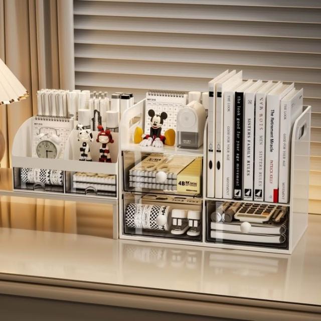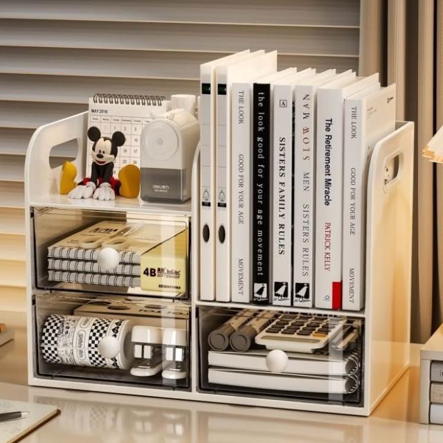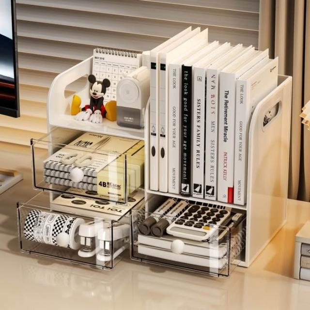 貨到付款桌面收纳盒收纳书架抽屉式书立书桌文具整理办公室学生笔筒置物架桌面整理盒 書桌收納 桌面抽屜式文具收納盒