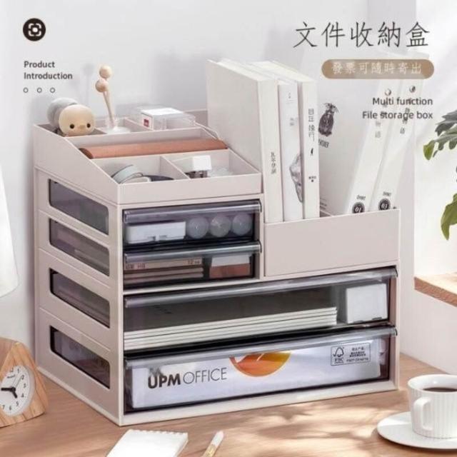 熱銷新品桌面文件收纳盒抽屉式学生文具储物盒办公室桌上a4纸杂物整理盒子辦公室收納盒 文具收納 桌上收納 筆透明 書桌