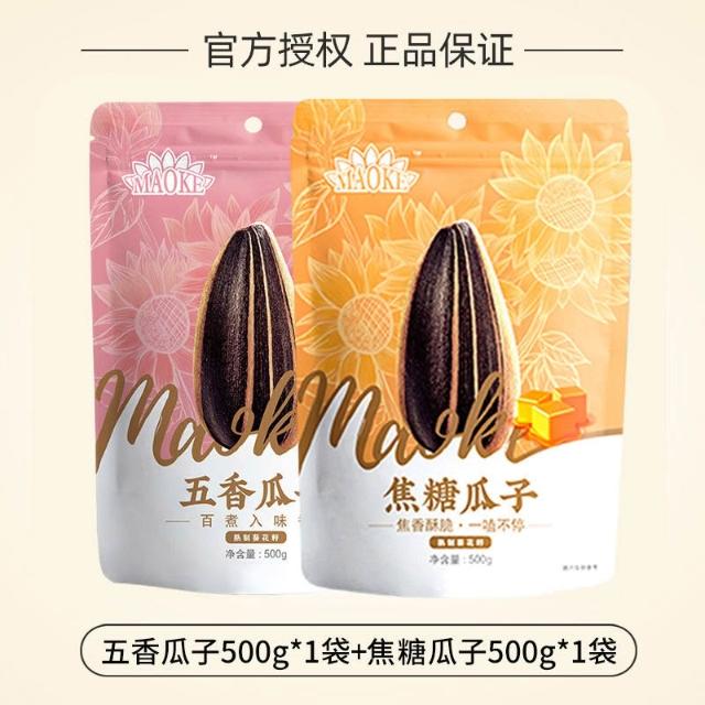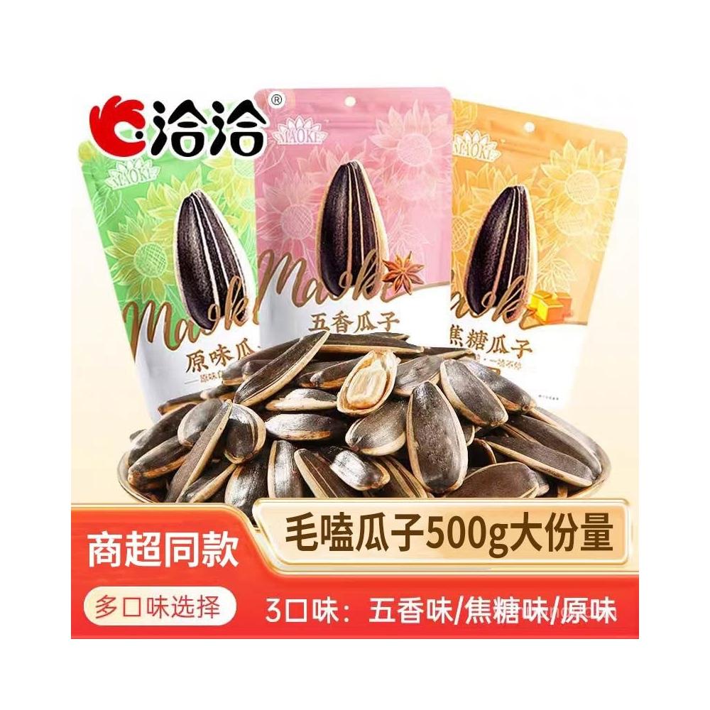 豐豐精品 洽洽毛嗑瓜子500g袋裝焦糖五香味香瓜子大顆粒葵花籽休閒炒貨零食