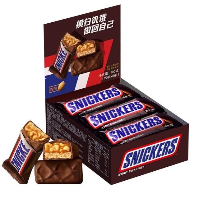 心心相印 士力架花生夾心巧克力120g盒裝休閒零食喜糖充飢糖果20g/條