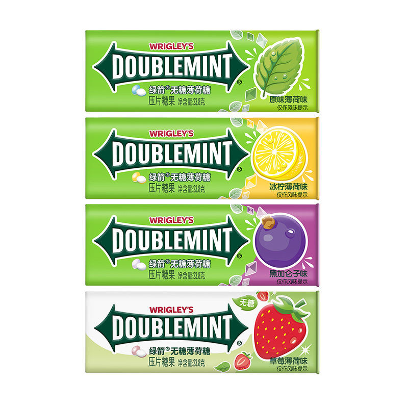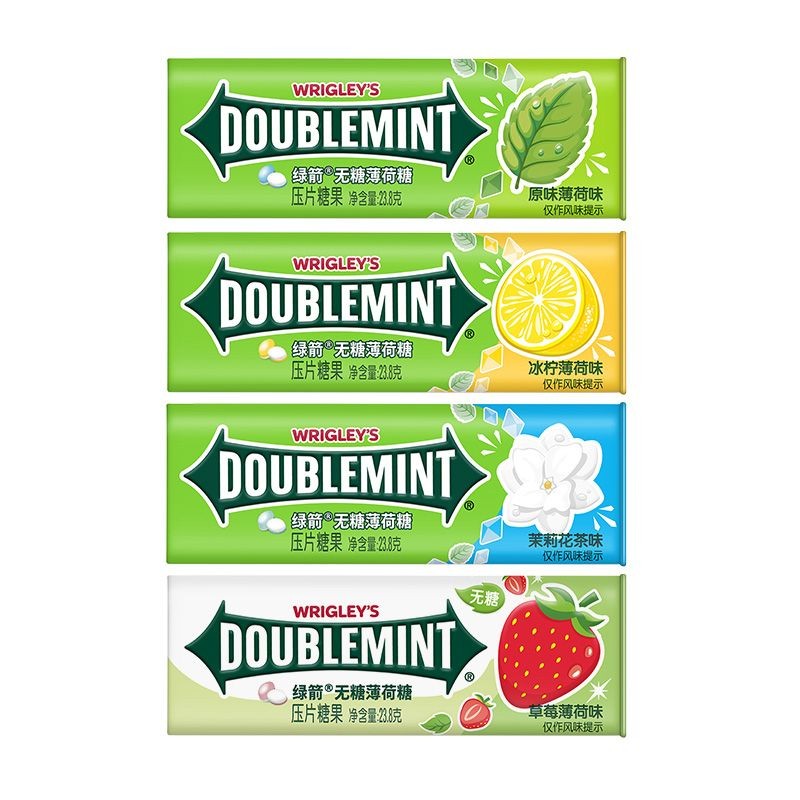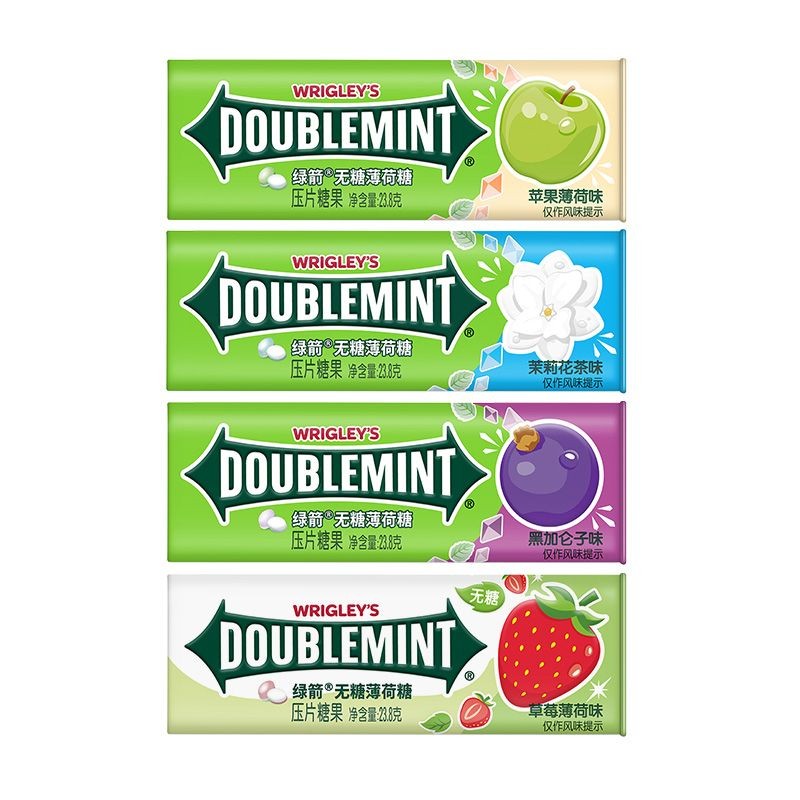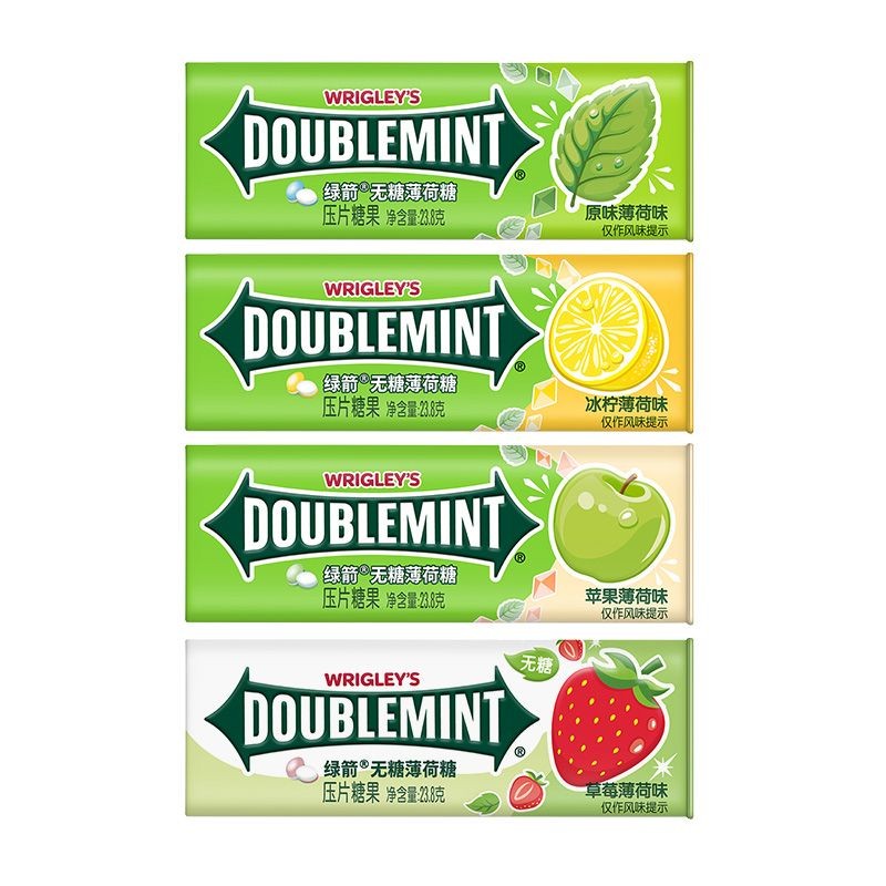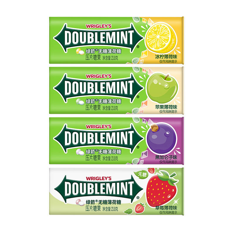 心心相印 【白鹿衕款】綠箭無糖薄荷糖35粒*4瓶鐵盒花果味清新零食