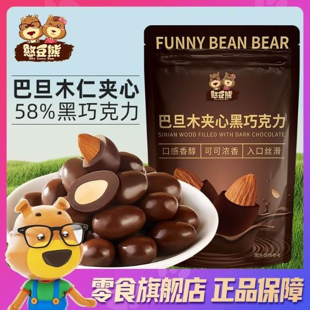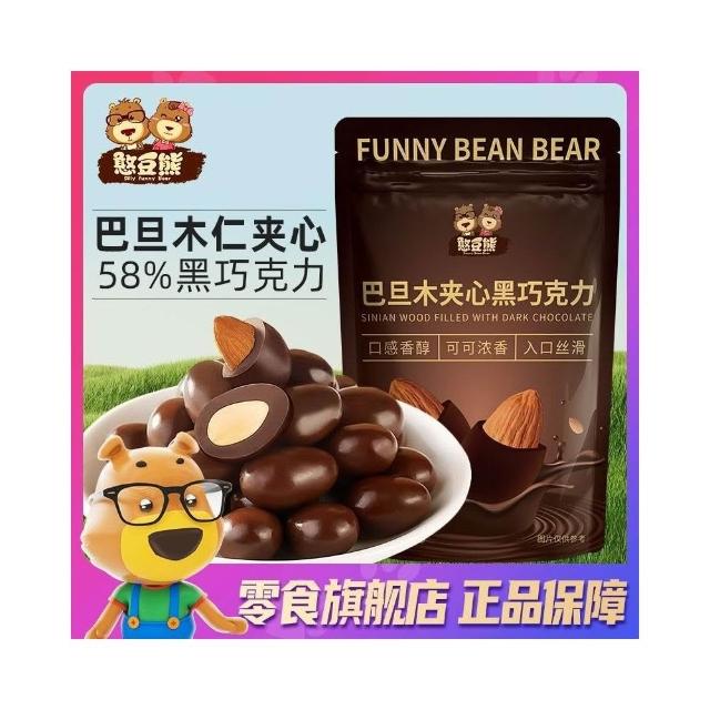 心心相印 憨豆熊巴旦木夾心黑巧克力純可可脂堅果夾心杏仁獨立小包休閒零食