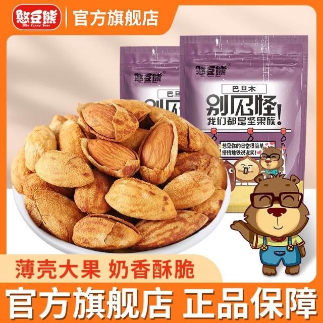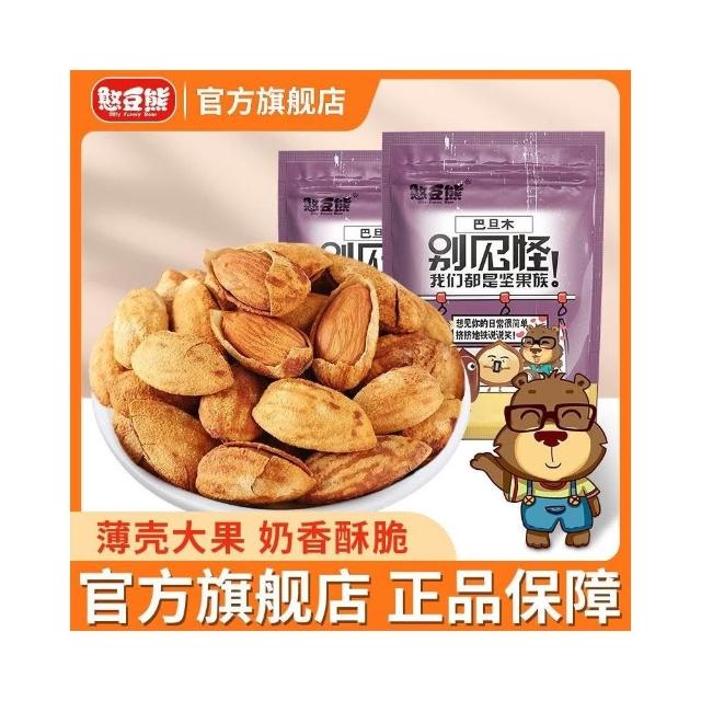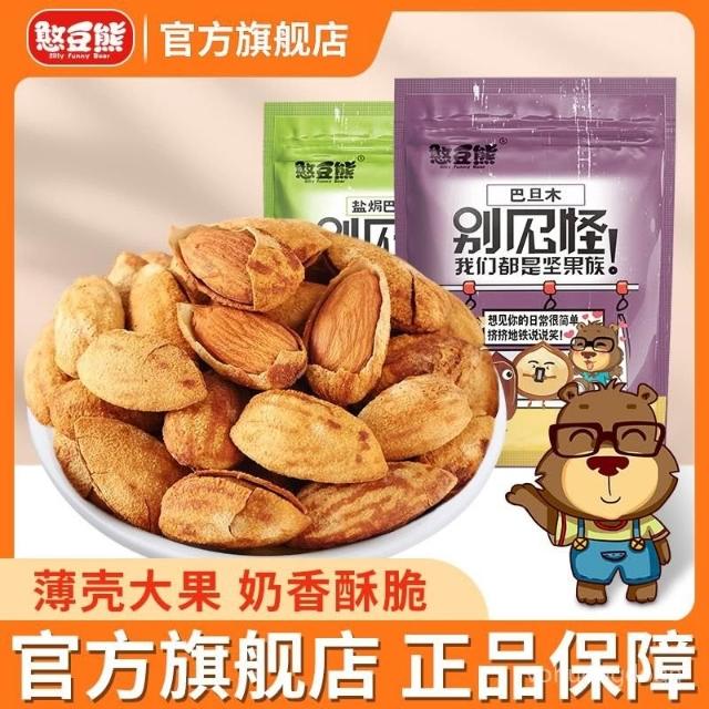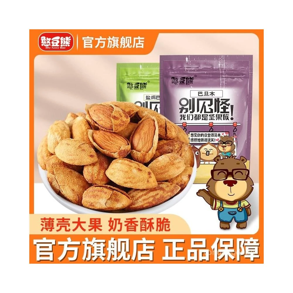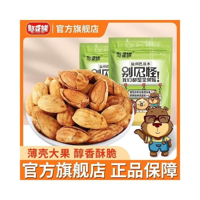 心心相印 憨豆熊 巴旦木500g袋裝奶香味薄殻大顆粒堅果零食鹽焗味杏仁60g