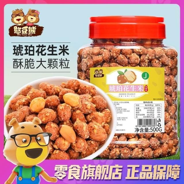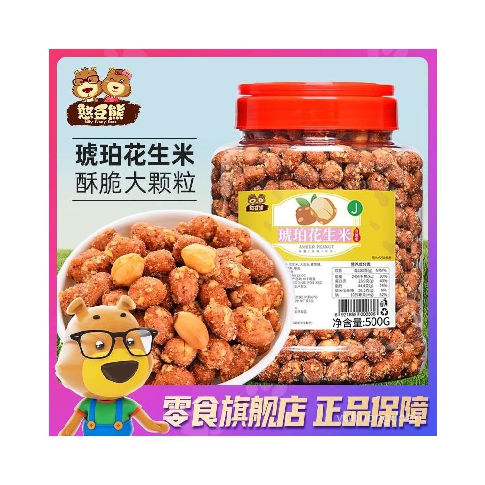 心心相印 憨豆熊 琥珀花生米500g/罐蜂蜜香辣味下酒菜多味花生零食250g