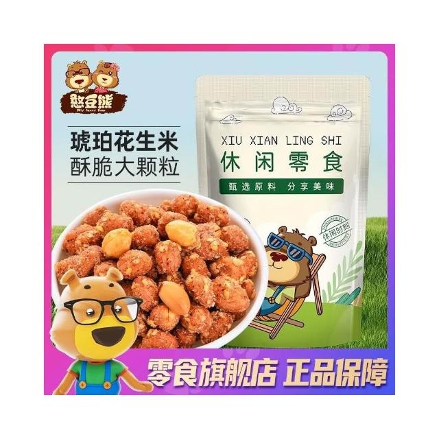 心心相印 憨豆熊 琥珀花生米500g/罐蜂蜜香辣味下酒菜多味花生零食250g