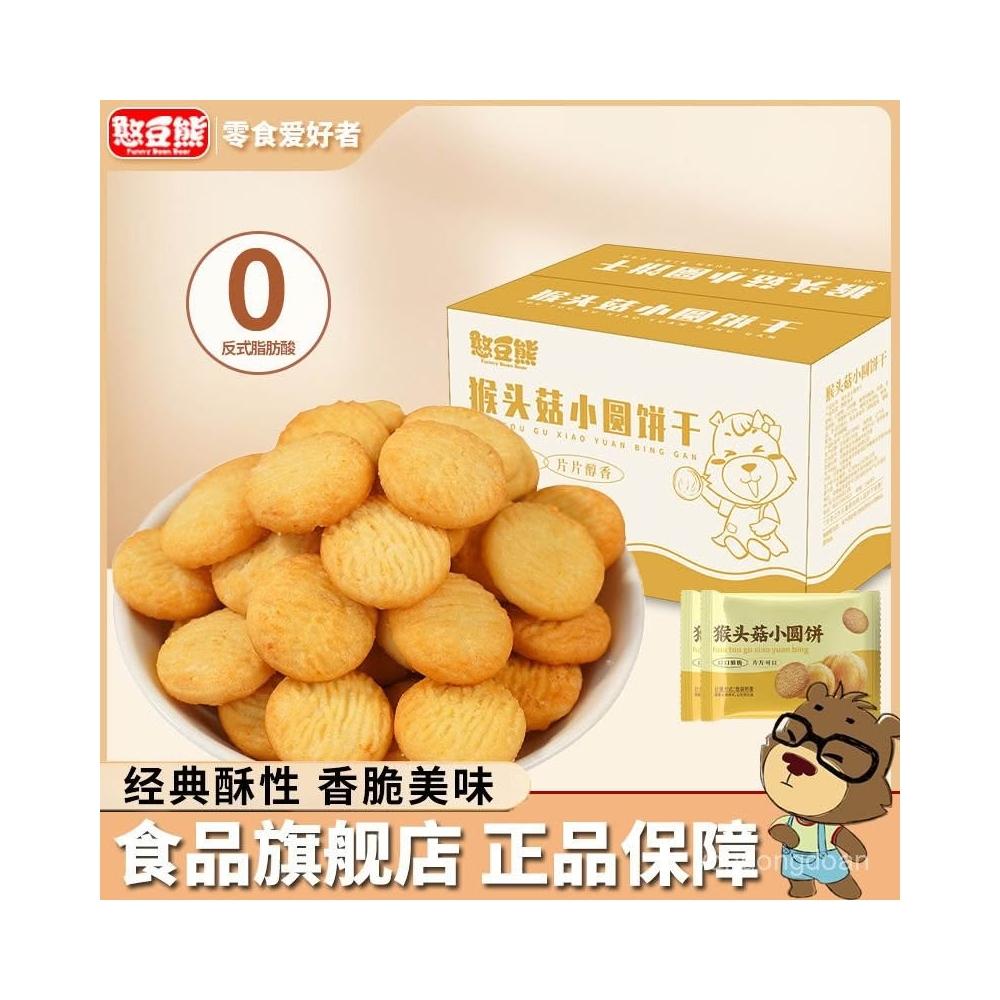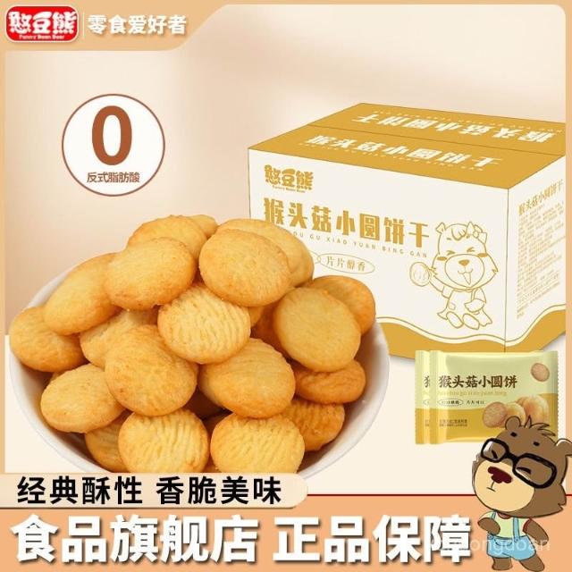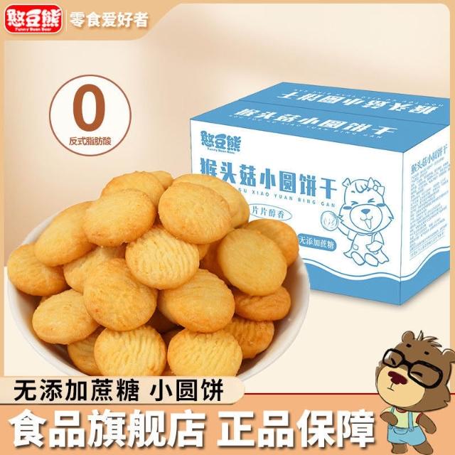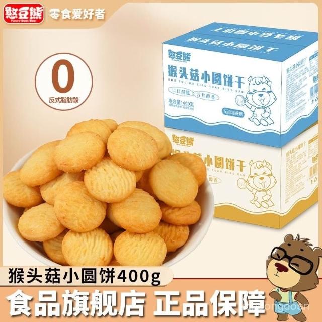 心心相印 憨豆熊猴頭菇餅幹400g小圓餅代餐飽腹無添加蔗糖獨立小包休閒零食