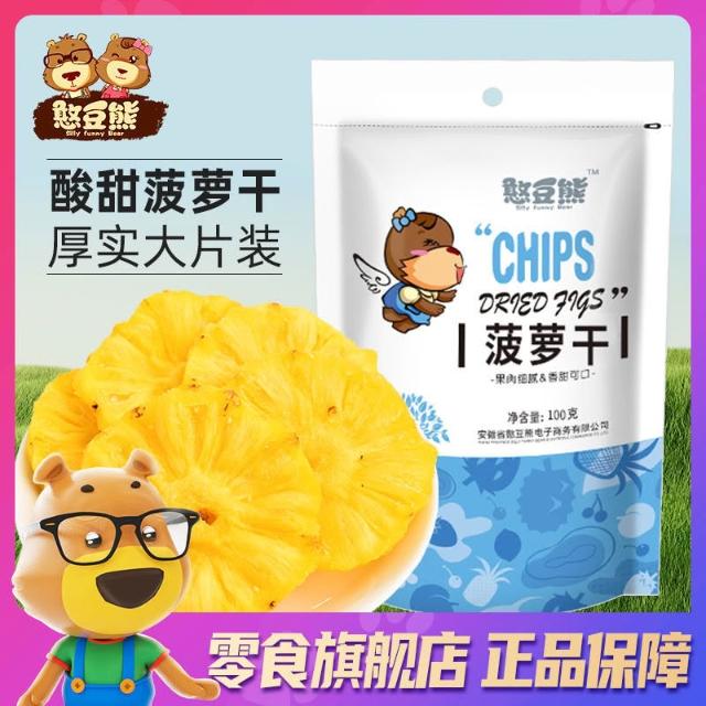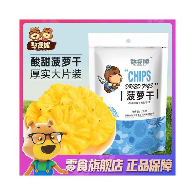 心心相印 憨豆熊菠蘿幹100g/袋果脯蜜餞水果幹鳳梨幹休閒零食小喫菠蘿片圈