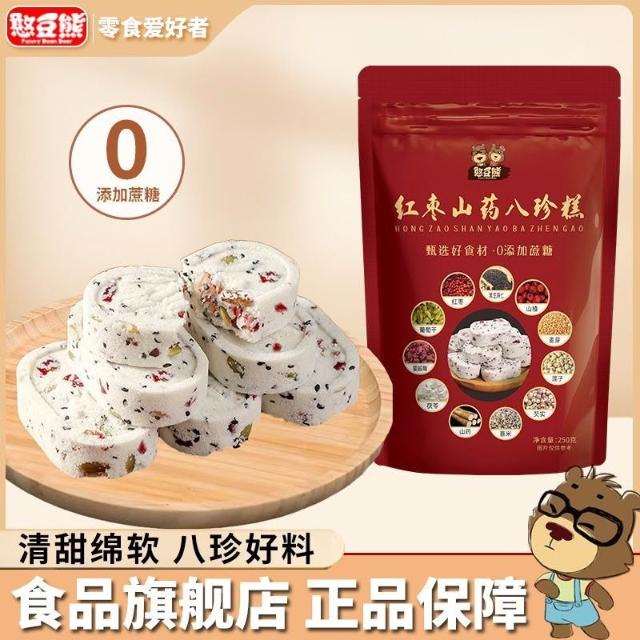 心心相印 憨豆熊紅棗山藥八珍糕250g傳統糕點心多種食材紅棗山藥休閒零食品