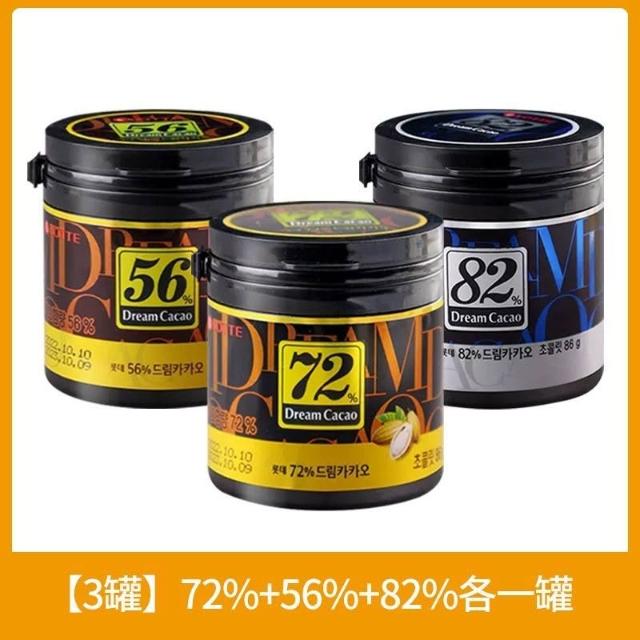 心心相印 LOTTE韓國進口樂天夢黑巧克力小方塊罐裝瓶裝巧克力零食72%56%82%
