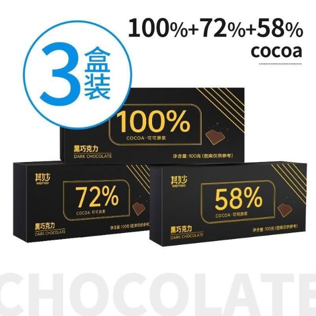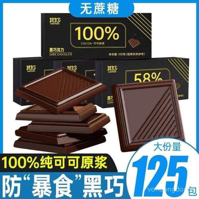 心心相印 100%黑巧克力純可可脂黑巧克力100純黑巧無蔗糖健身零食代餐食品