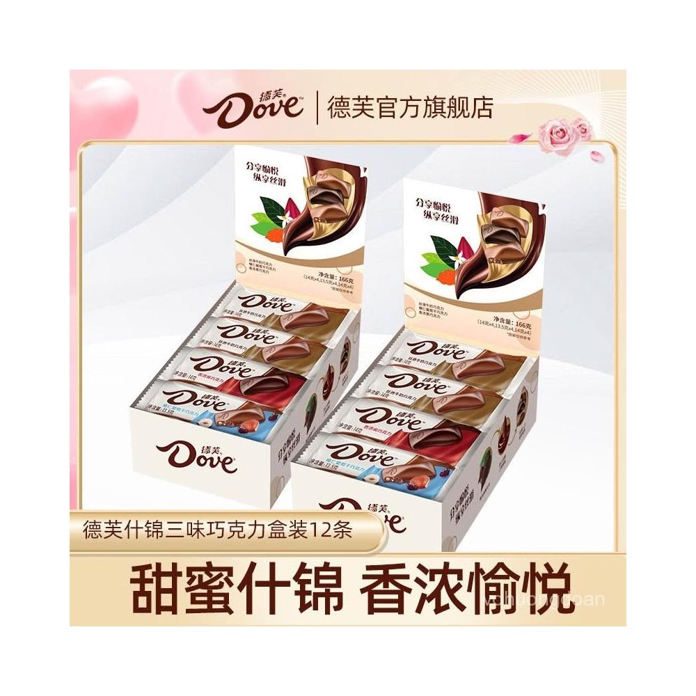 心心相印 德芙什錦巧克力盒裝166g12條絲滑牛奶黑巧休閒零食糖果送女友批髮