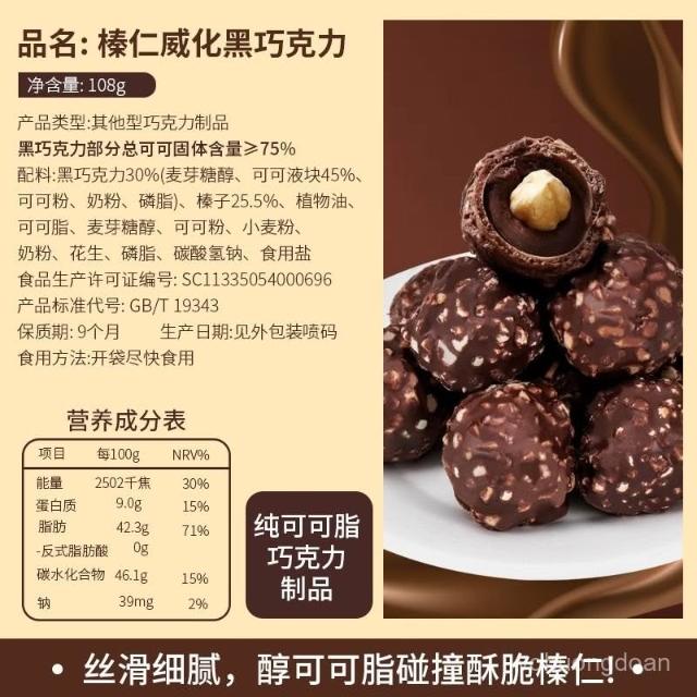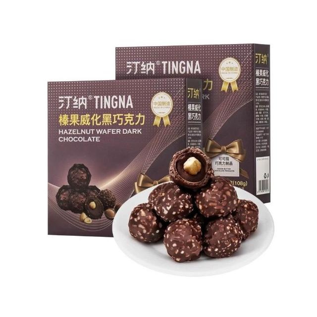 心心相印 【三盒】汀納榛果威化黑巧純可可脂黑巧克力休閒零食喜糖伴手禮