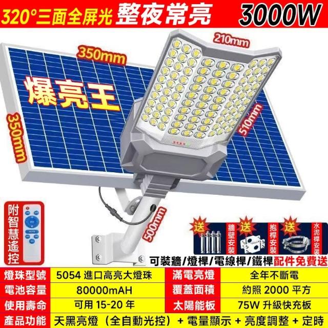 KUCA 🔥桃園出貨+永久保固🔥爆亮3000W 雙曲面感應太陽能路燈 太陽能戶外燈 太陽能感應探照燈 太陽能一體化路燈