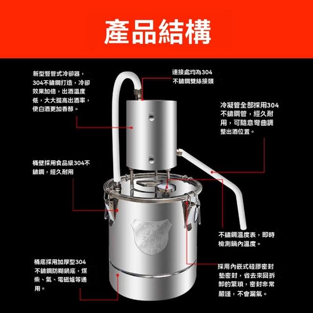 釀酒機 304不鏽鋼 封閉式蒸酒器蒸餾機 小型家用白酒燒酒 純露釀酒設備