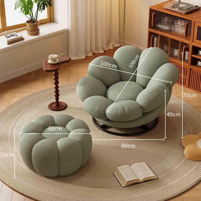沙發 單人沙發帶腳踏 羊羔絨可旋轉椅臥室陽台躺椅