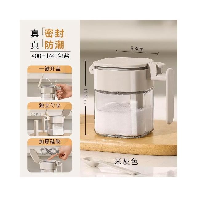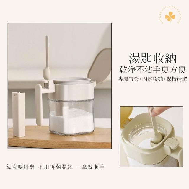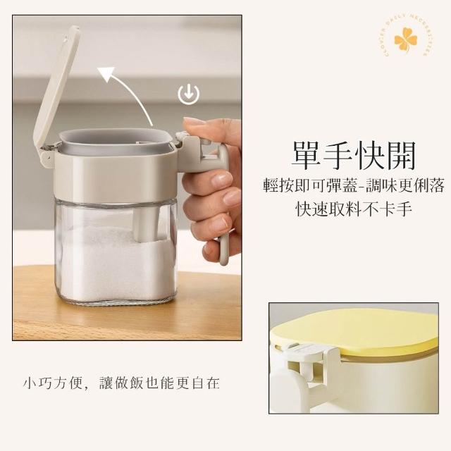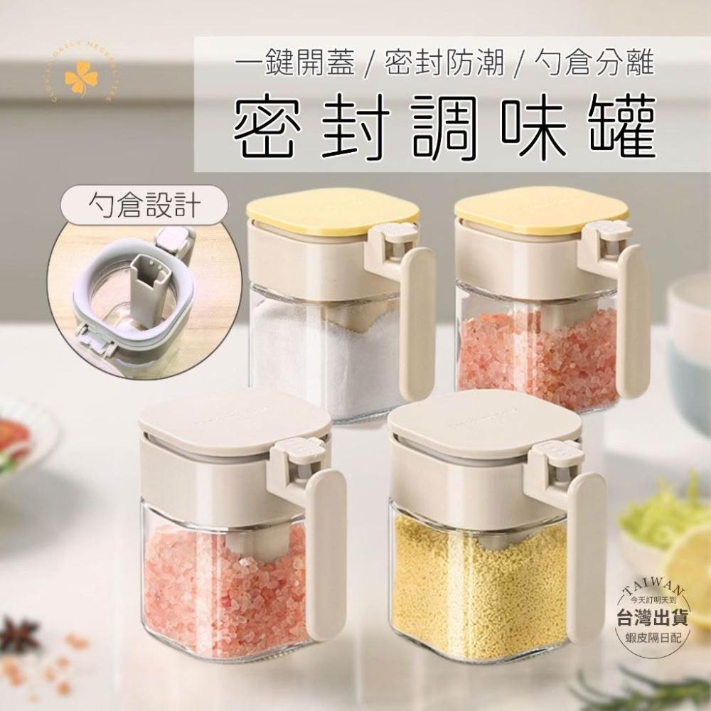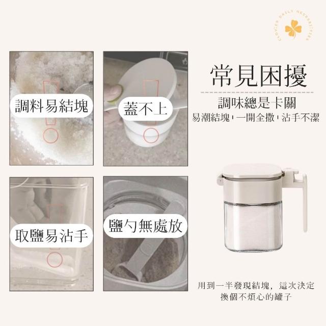 玻璃密封調味罐 附湯匙|矽膠防潮|不沾手 好放好拿|廚房調味料罐