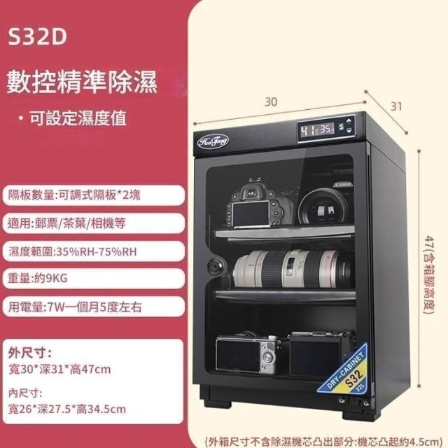 RTAKO電子防潮箱 相機防潮箱 32L 相機鏡頭除濕櫃 茶葉郵票收納箱 可調隔板 乾燥箱 防潮櫃 附鏡頭墊