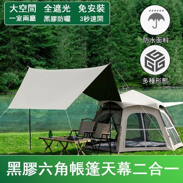 LeisHome悠享家 全自動六角帳篷 天幕二合一 黑膠防曬 便攜式帳篷 露營帳蓬 野餐帳篷 速開帳篷 秒開帳篷