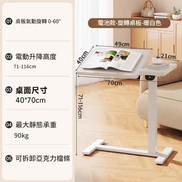 可移動氣動旋轉款電動升降邊桌
