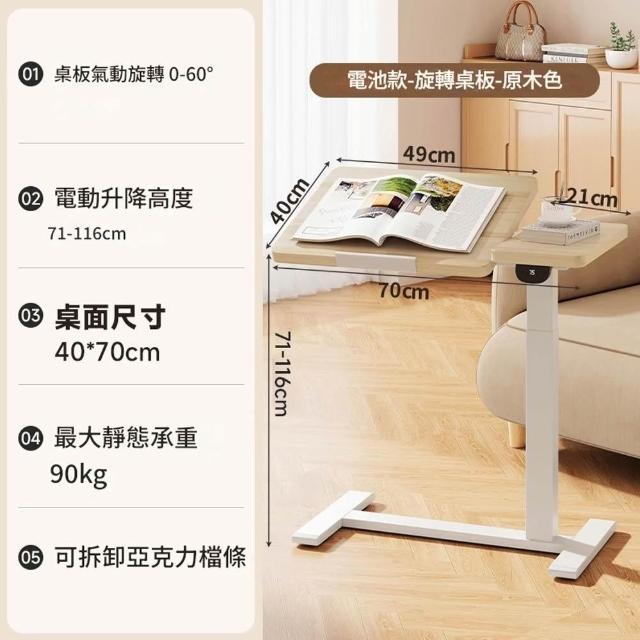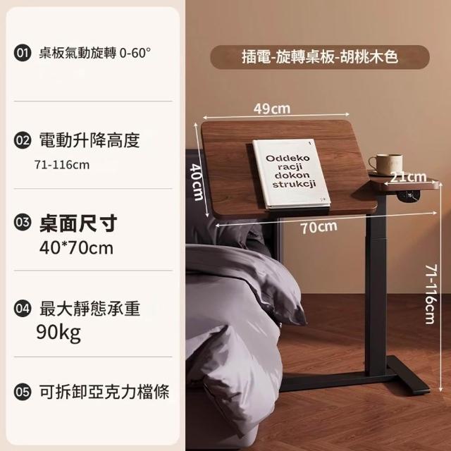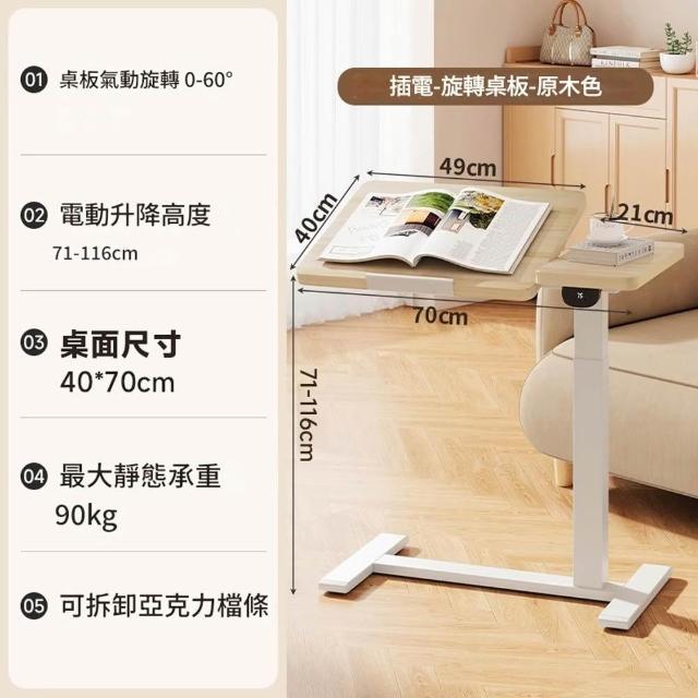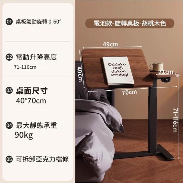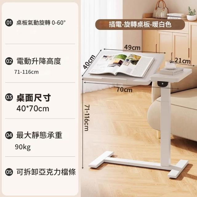 CTL床邊電動升降桌 可翻轉桌板 學習桌書桌 筆記本電腦桌邊幾 可滑輪移動小桌子