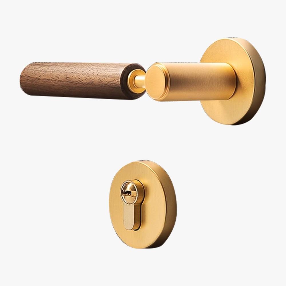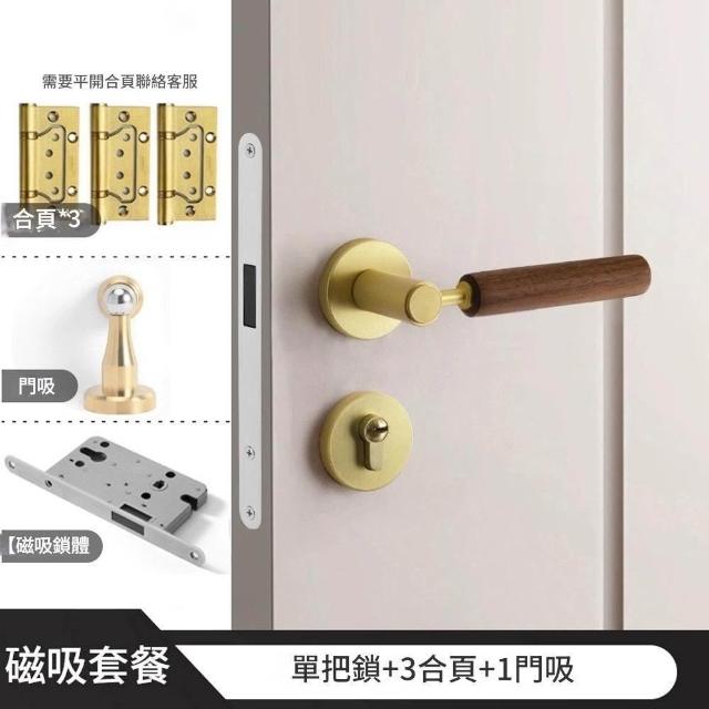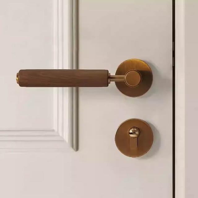 Loha 樂活家室內磁吸靜音門鎖 胡桃木把手 金屬胡桃木門把鎖 家用臥室通用型門把鎖