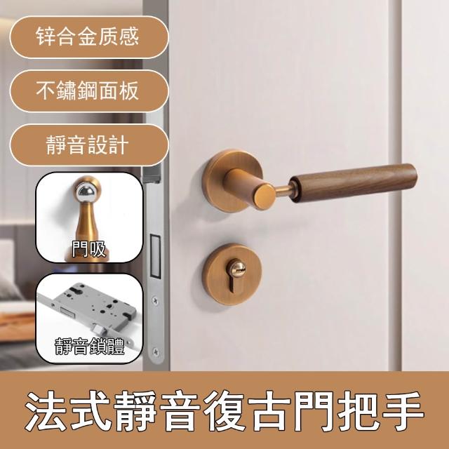 Loha 樂活家室內磁吸靜音門鎖 胡桃木把手 金屬胡桃木門把鎖 家用臥室通用型門把鎖