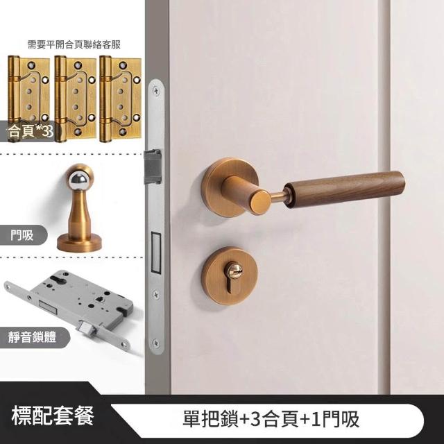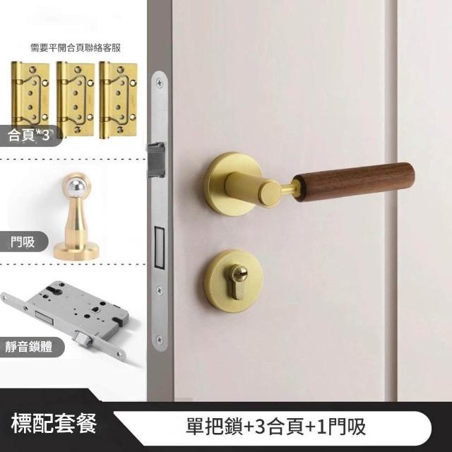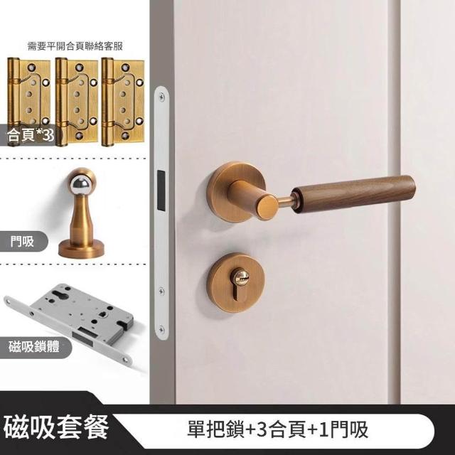 Loha 樂活家室內磁吸靜音門鎖 胡桃木把手 金屬胡桃木門把鎖 家用臥室通用型門把鎖