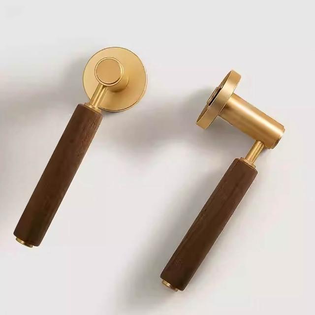 Loha 樂活家室內磁吸靜音門鎖 胡桃木把手 金屬胡桃木門把鎖 家用臥室通用型門把鎖