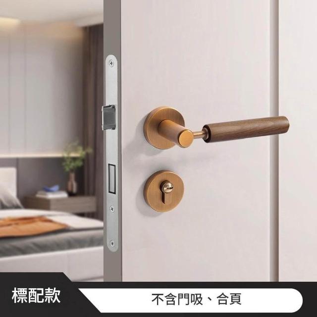 Loha 樂活家室內磁吸靜音門鎖 胡桃木把手 金屬胡桃木門把鎖 家用臥室通用型門把鎖