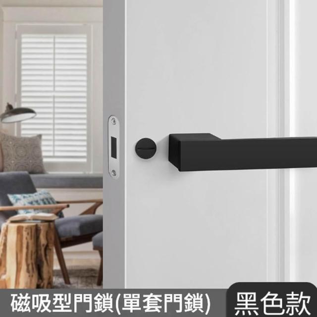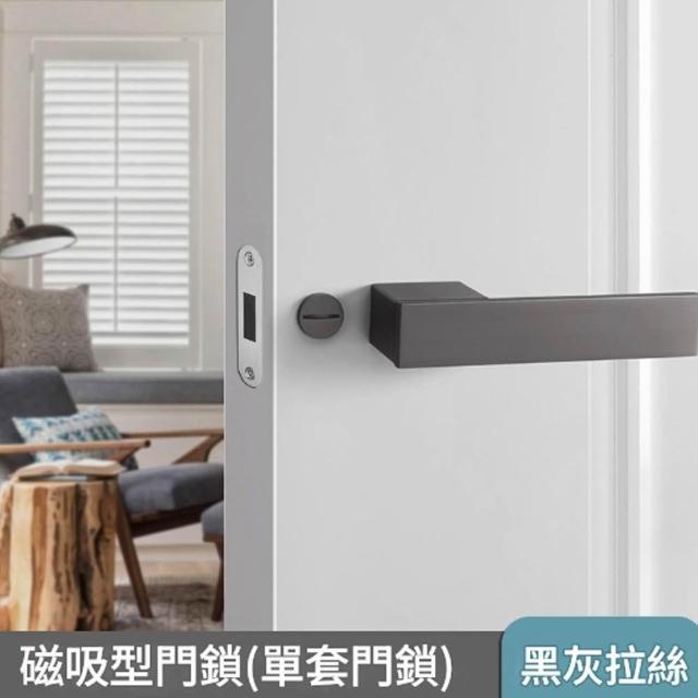 Loha 樂活家北歐極簡門鎖 室內磁吸門把鎖 臥室靜音房門鎖 家用簡約門把手 高級灰黑色一字鎖