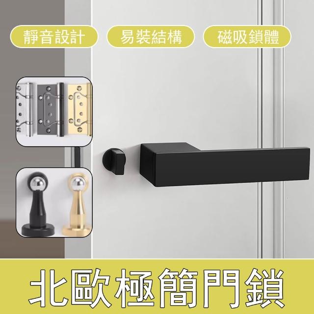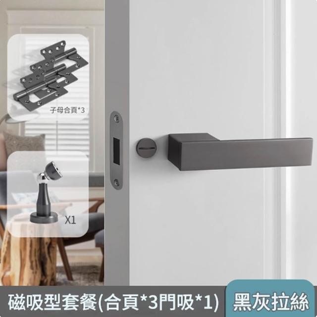 Loha 樂活家北歐極簡門鎖 室內磁吸門把鎖 臥室靜音房門鎖 家用簡約門把手 高級灰黑色一字鎖