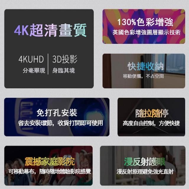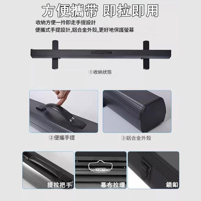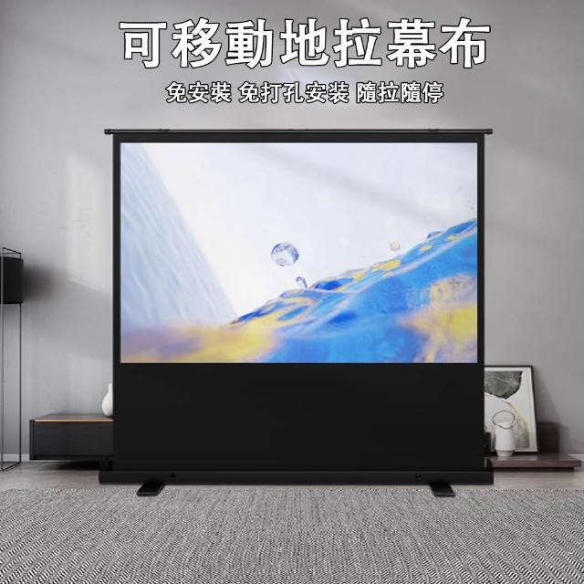 RTAKO免打孔地拉幕布 可移動地拉幕布 可攜式投影幕布 4K高清 白玻纖 便攜收納 多尺寸選擇 60吋/80吋/100吋 投影螢