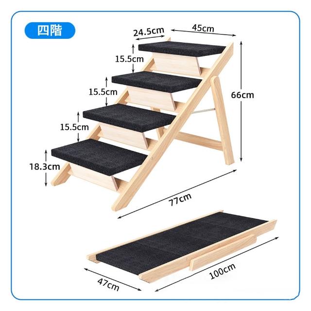 PETCOCO 摺疊式寵物樓梯斜坡 實木穩固 防滑耐磨 可折疊設計 狗狗階梯 寵物專用樓梯