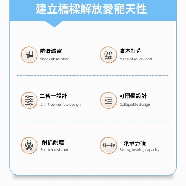 PETCOCO 摺疊式寵物樓梯斜坡 實木穩固 防滑耐磨 可折疊設計 狗狗階梯 寵物專用樓梯