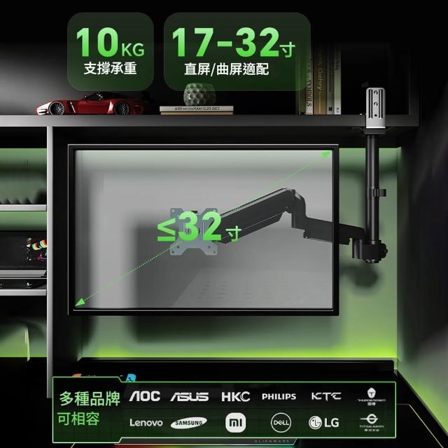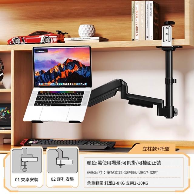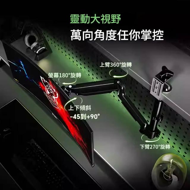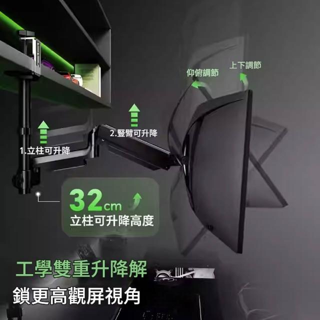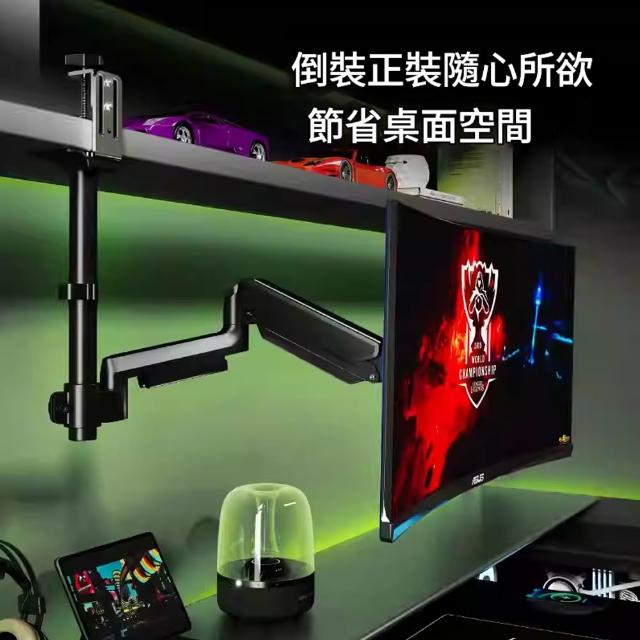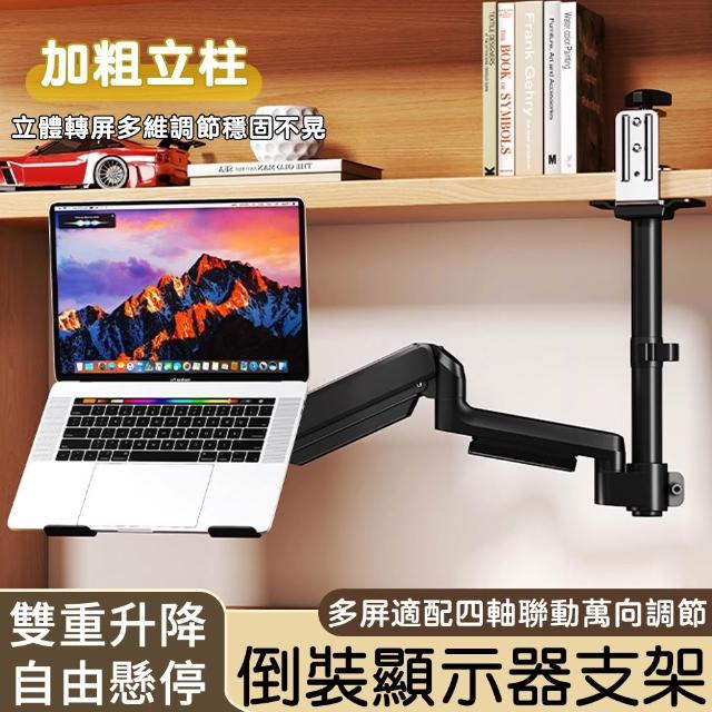 CTL正裝倒掛顯示器支架 書櫃夾式機械臂支架 氣動雙重升降旋轉懸掛支架 增高筆記本托盤