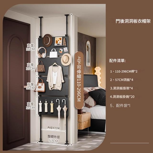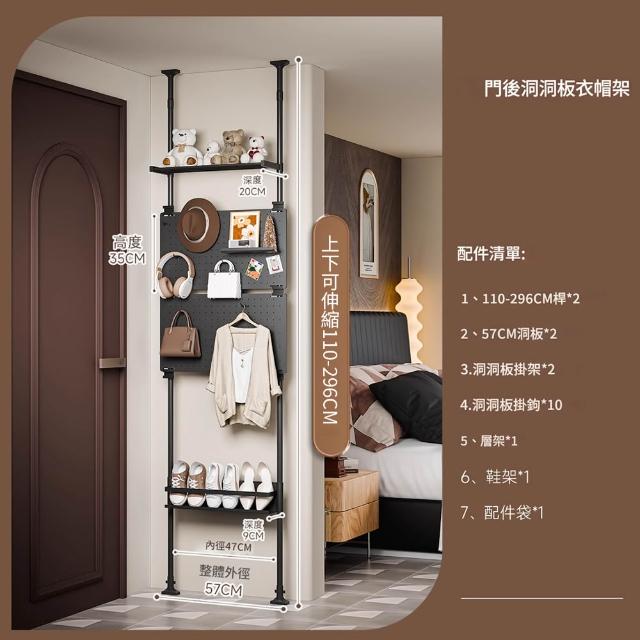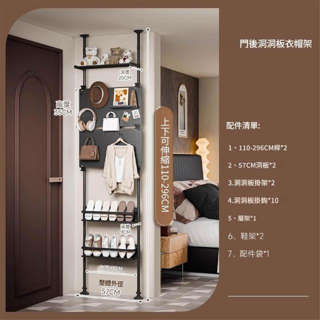 Loha 樂活家洞洞板置物架 門後超薄多層收納架 臥室玄關頂天立地置物架 頂天立地洞洞板掛衣帽架