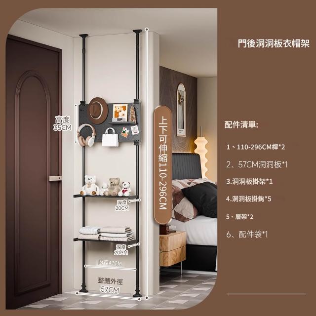 Loha 樂活家洞洞板置物架 門後超薄多層收納架 臥室玄關頂天立地置物架 頂天立地洞洞板掛衣帽架