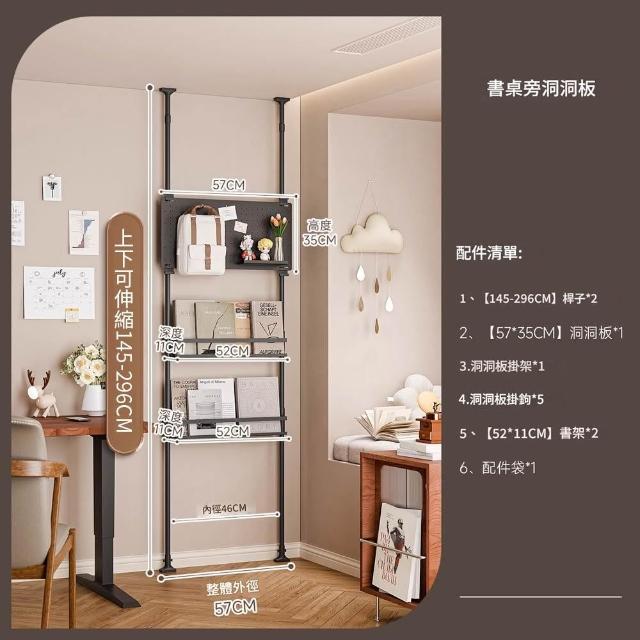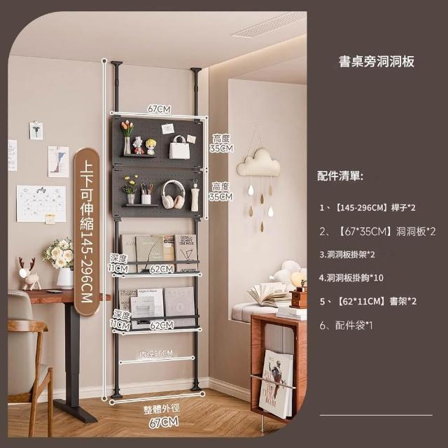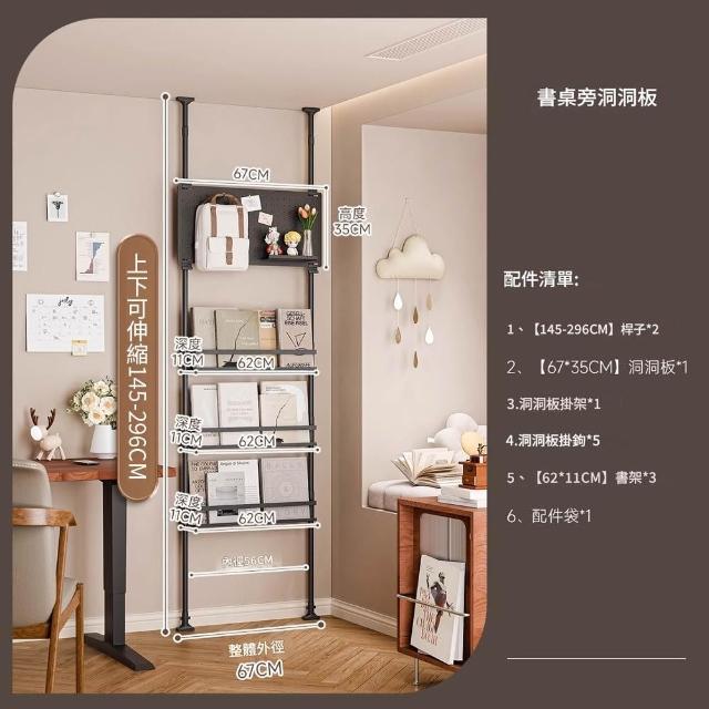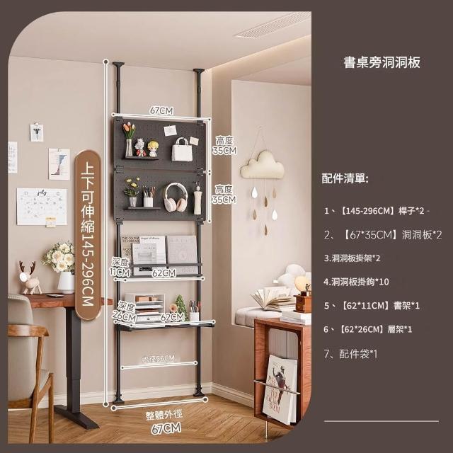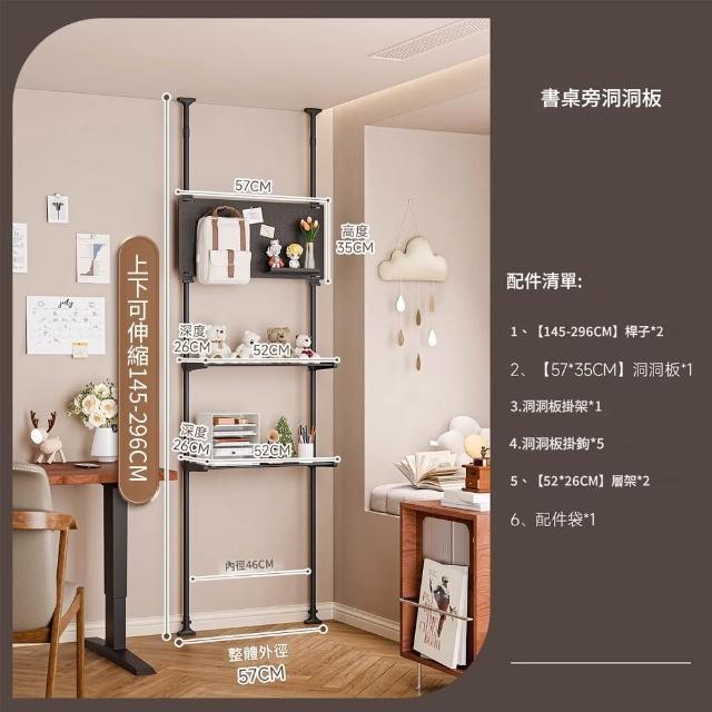 Loha 樂活家頂天立地洞洞板置物架 書桌墻旁造型置物架 頂天立地多層收納架 臥室書本擺件書房展示架