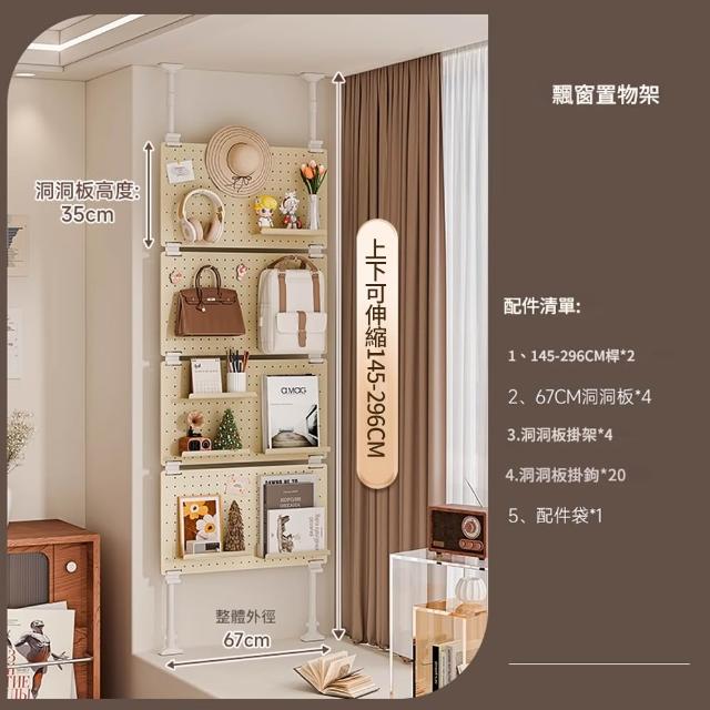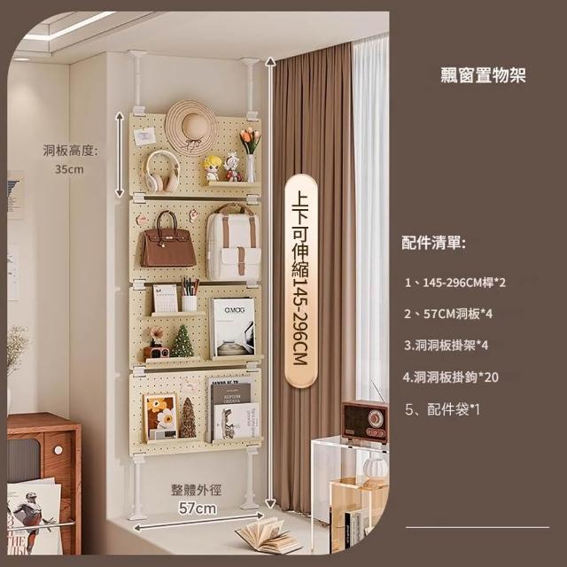 Loha 樂活家頂天立地飄窗置物架 洞洞板收納神器 頂天立地收納架 客廳臥室收納儲物 櫃窗臺書架