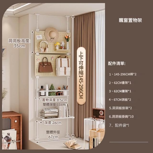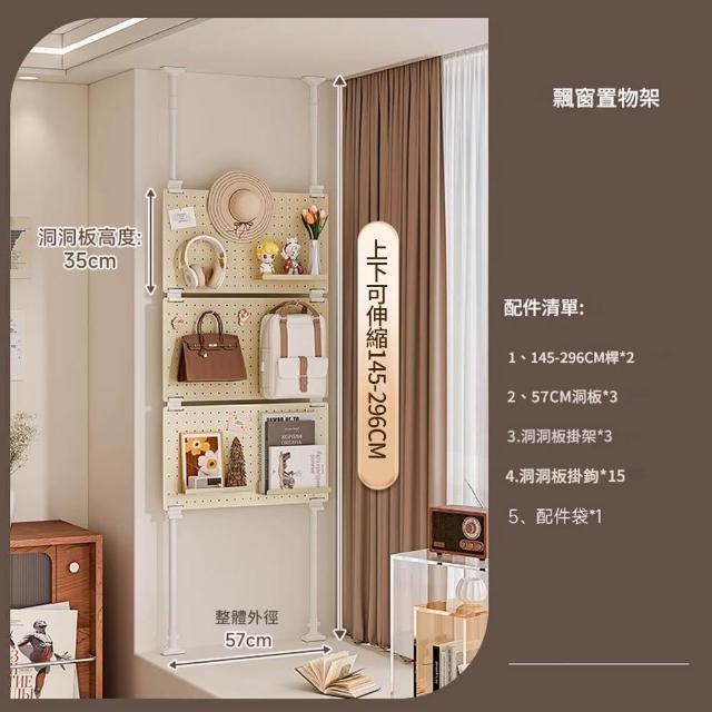 Loha 樂活家頂天立地飄窗置物架 洞洞板收納神器 頂天立地收納架 客廳臥室收納儲物 櫃窗臺書架