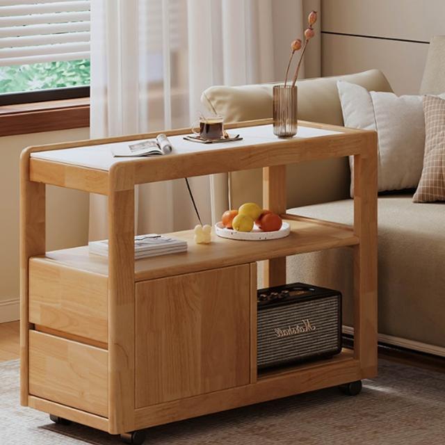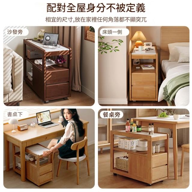 木鈺堂實木沙發邊櫃 客廳多功能茶几 可移動免安裝設計 岩板側邊幾 床邊櫃 收納櫃 小茶几 邊幾 邊桌
