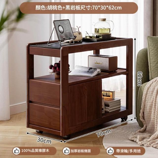 木鈺堂實木沙發邊櫃 客廳多功能茶几 可移動免安裝設計 岩板側邊幾 床邊櫃 收納櫃 小茶几 邊幾 邊桌