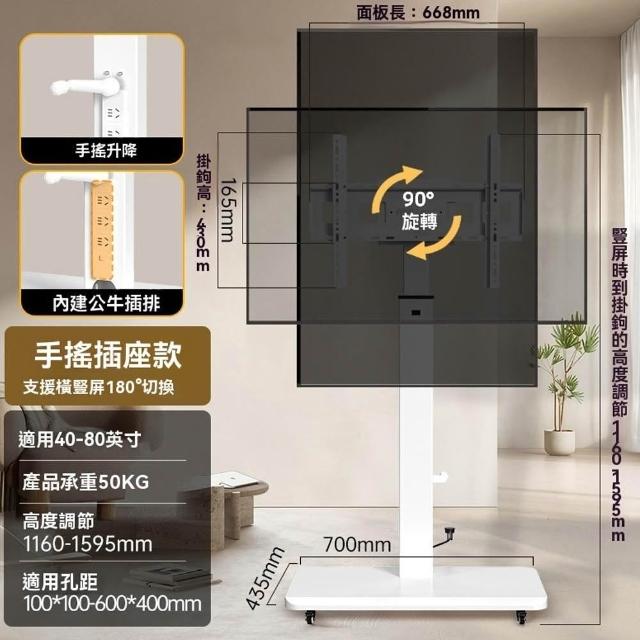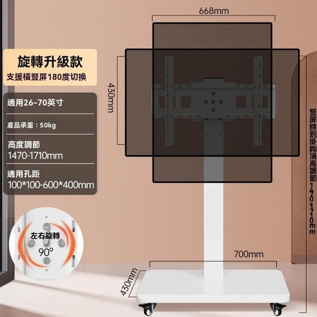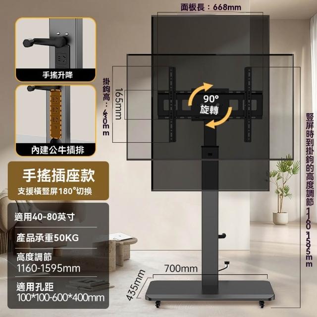 Loha 樂活家手搖升降電視支架 旋轉電視支架 落地式支架 屏幕掛架 投屏支架 附帶萬向滑輪支架