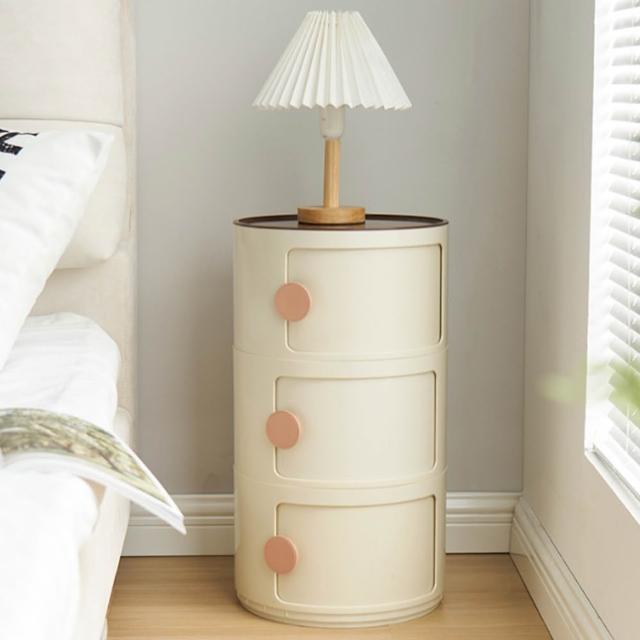 RTAKO圓形床頭櫃 創意床邊櫃 臥室小型收納櫃 簡約現代置物架 臥室迷你床邊櫃 圓筒儲物櫃