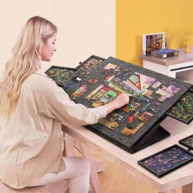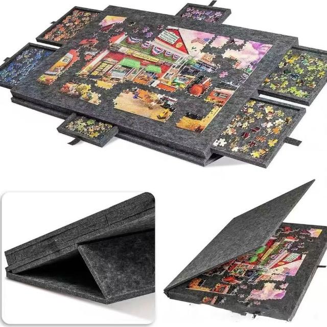 Loha 樂活家毛氈拼圖工作板 帶支架 便攜式1000塊 拼圖板 拼圖工作檯 抽拉收納盒 可支架撐起圖板