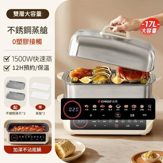 Eco森活家用大容量不銹鋼電蒸鍋 三層10L 蒸箱 蒸汽鍋 電蒸籠 料理鍋 美食鍋 蒸煮一體鍋 多功能電蒸箱