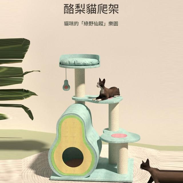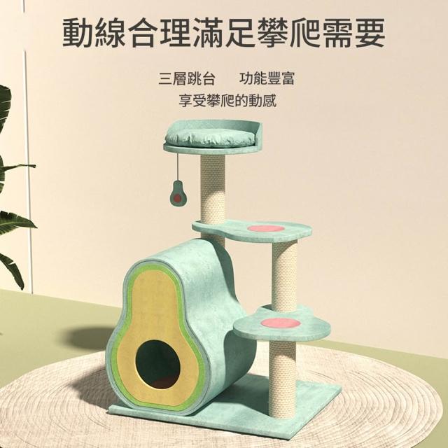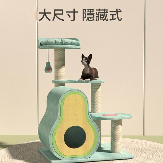 PETCOCO 牛油果貓爬架 耐磨耐抓 貓樹貓窩一體 劍麻貓抓柱 多層貓跳台 貓爬架 貓別墅 貓跳台 貓窩 多貓家庭適用
