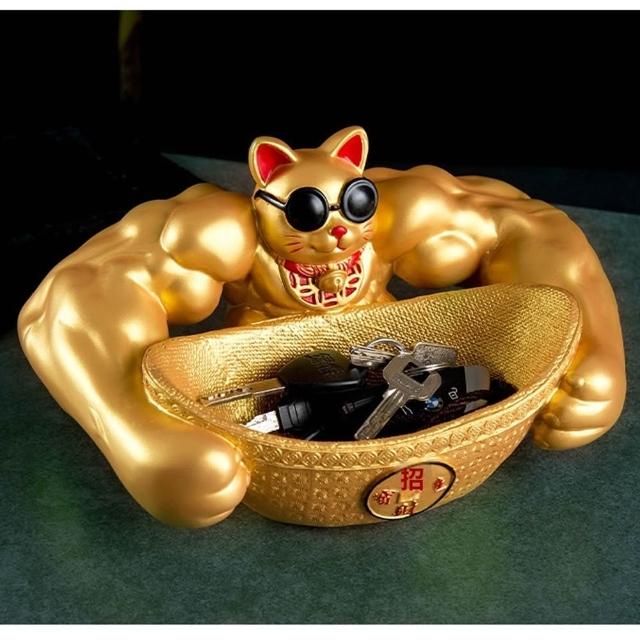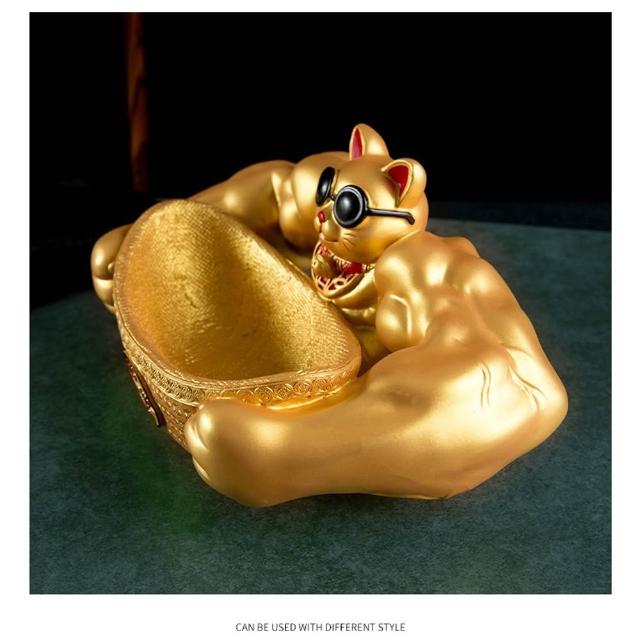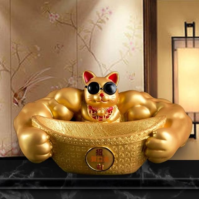 Eco森活大力肌肉手臂劫財貓 麒麟臂聚寶盆 擺件 喬遷禮 桌上擺飾 創意搞怪擺件 辦公室桌裝飾品 開業轉運擺件