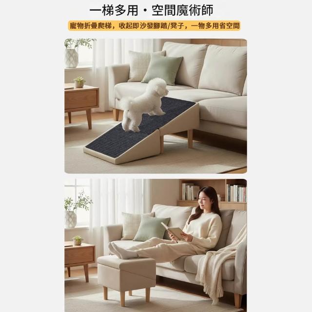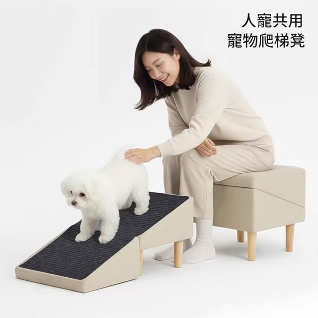 PETCOCO 多功能寵物爬梯椅凳 寵物樓梯 可摺疊台階 防滑耐磨 二合一設計 寵物爬梯 寵物斜坡 狗狗樓梯 寵物階梯